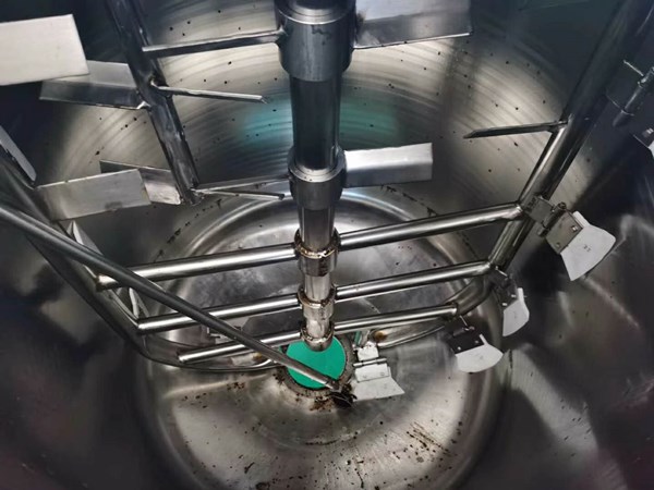 歐先生購買的這款一機(jī)多用的日化設(shè)備,在洗潔精或洗衣液原料和水加入后,攪拌鍋里面的液體向外溢出來;設(shè)備底部的所謂剪切乳化機(jī)功率為5.5千瓦,不僅耗電功率大,還由于離心力大導(dǎo)致設(shè)備運(yùn)行時(shí)漏水,同時(shí)牢籠式樣的乳化頭存在乳化盲區(qū),導(dǎo)致產(chǎn)品溶解不徹底而影響產(chǎn)品品質(zhì),最后在無奈之下,歐先生將底部的乳化電機(jī)取點(diǎn)變成了圖片中難以解決的大窟窿。