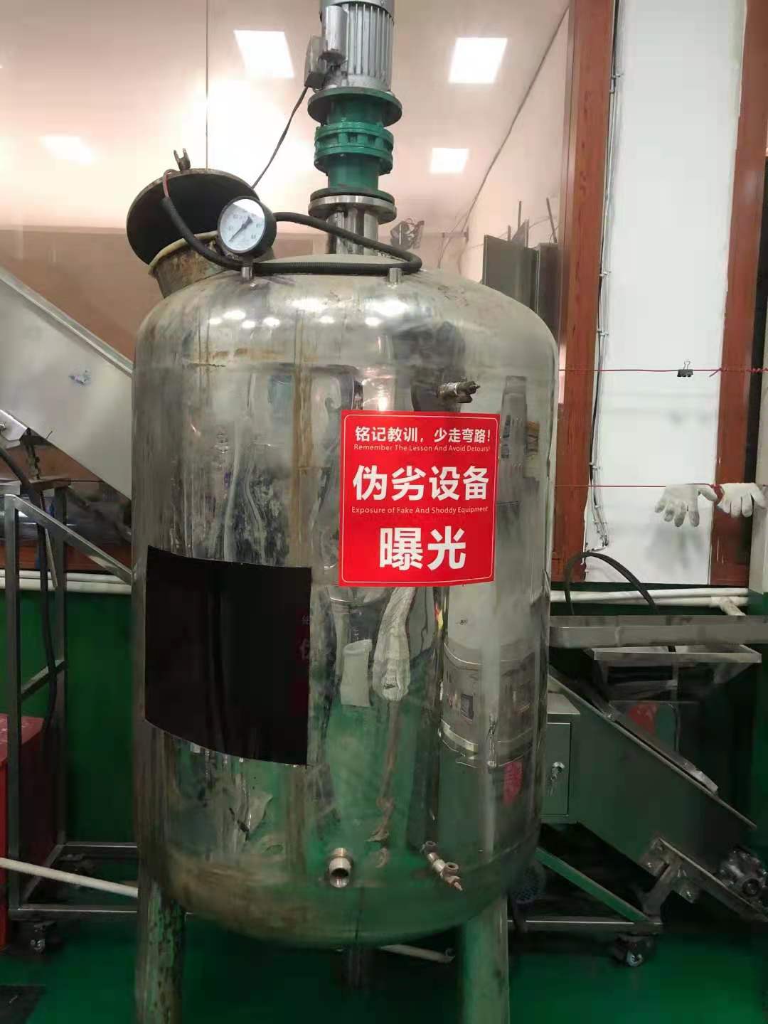這種一噸容積的洗滌劑設(shè)備,僅僅是正規(guī)一噸洗滌劑設(shè)備十分之一的重量,最坑人的品質(zhì)差,而是攪拌機(jī)里面發(fā)熱管直接加熱接觸化工原料后導(dǎo)電引發(fā)人身安全危機(jī)。