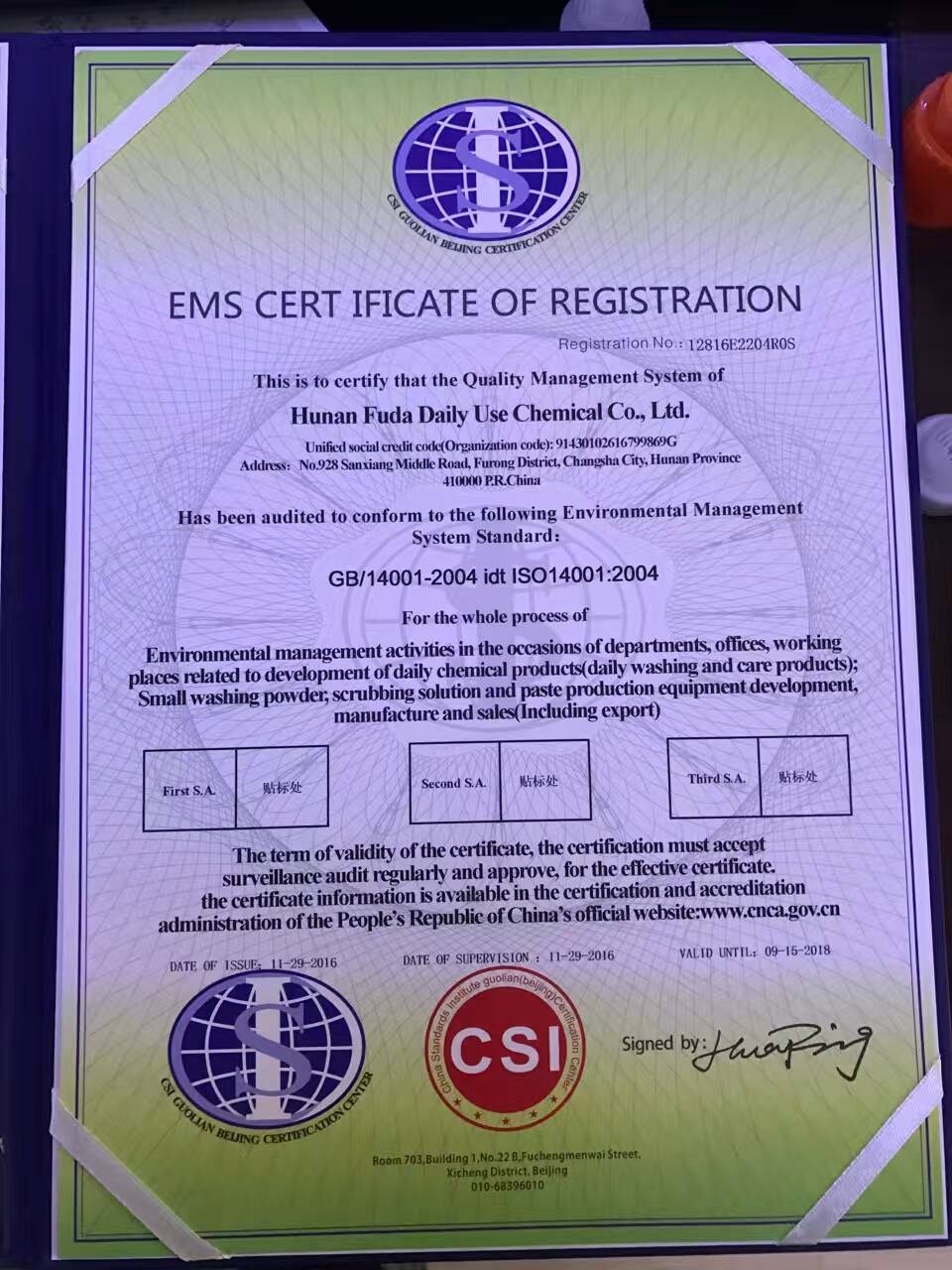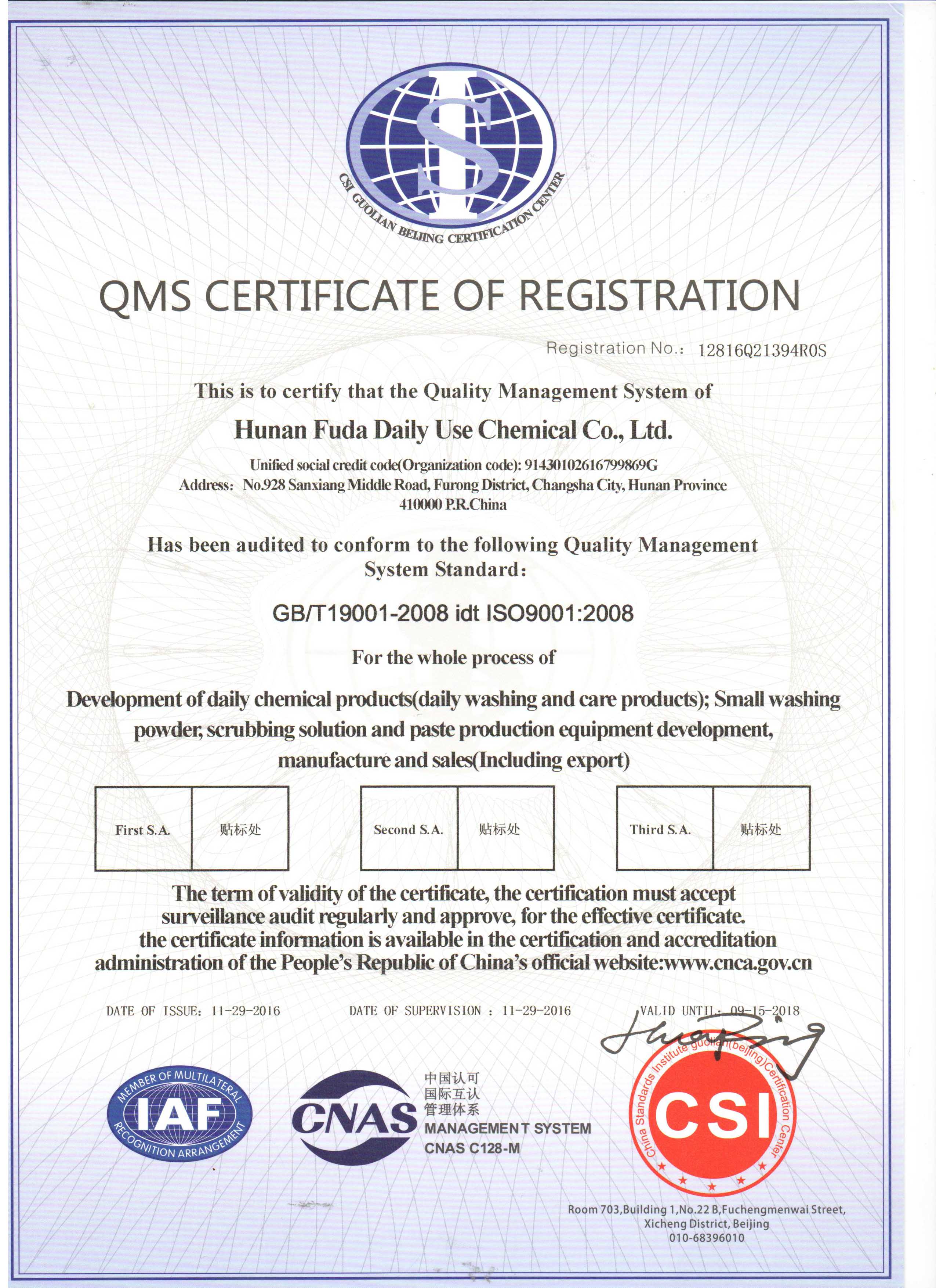 富達(dá)日化通過努力于2016年11月獲得 ISO9001國(guó)際質(zhì)量管理體系認(rèn)證和ISO14001國(guó)際環(huán)境認(rèn)證。富達(dá)日化建于1985年,原名富達(dá)洗衣粉廠,1997年成立湖南省富達(dá)日化有限公司,下設(shè)富達(dá)日化設(shè)備廠、富達(dá)洗滌用品廠、艾菻康生物科技有限公司、富達(dá)小發(fā)明家搖籃教育科技有限公司,是一家具有產(chǎn)品進(jìn)出口資格的綜合性企業(yè)。公司地處湖南長(zhǎng)沙市中心,是一代偉人毛澤東主席及原國(guó)家主席劉少奇同志故鄉(xiāng)。地理位置優(yōu)越,交通便捷。湖南省富達(dá)日化有限公司主要生產(chǎn)銷售各種洗滌用品、洗衣粉生產(chǎn)設(shè)備、系列液體洗滌劑生產(chǎn)設(shè)備、肥皂、透明皂設(shè)備、顆粒成型機(jī)、化工干燥設(shè)備、反滲透水處理器等日化機(jī)械,集日化新技術(shù)產(chǎn)品研發(fā)、設(shè)備和洗滌產(chǎn)品生產(chǎn)銷售、日化產(chǎn)品分析化驗(yàn)和技術(shù)服務(wù)于一體,先后通過了ISO質(zhì)量管理體系認(rèn)證、CE認(rèn)證。公司擁有多項(xiàng)新技術(shù)產(chǎn)品國(guó)家專利,曾兩次獲得中國(guó)國(guó)際新技術(shù)產(chǎn)品博覽會(huì)科技創(chuàng)新金獎(jiǎng),享受國(guó)家科技部重點(diǎn)立項(xiàng)產(chǎn)品創(chuàng)新基金支持。設(shè)備和技術(shù)遍布全國(guó)各地,并出口越南、哈薩克斯坦 、馬來西亞、俄羅斯、伊朗、非洲等多個(gè)國(guó)家和地區(qū)。