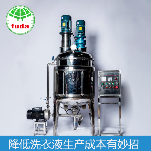 洗衣液設(shè)備結(jié)構(gòu)決定洗衣液品質(zhì):傳統(tǒng)工藝的洗潔精生產(chǎn)設(shè)備,就是安裝一個(gè)攪拌機(jī)裝置對溶劑攪拌,因攪拌不均勻產(chǎn)品乳化不夠好,導(dǎo)致溶劑上層濃度太小,故只能投入更多原料,即增加了成本。因乳化不夠好,一段時(shí)間后產(chǎn)品容易分層,容易變質(zhì)。富達(dá)日化采用的新工藝,在機(jī)器上部安裝剪切機(jī)和攪拌機(jī),兩臺(tái)裝置高速旋轉(zhuǎn)(3000轉(zhuǎn)/分,生產(chǎn)過程中噪音低于50分貝),產(chǎn)品能夠充分的攪拌和乳化,達(dá)到濃度統(tǒng)一,產(chǎn)品不容易分層,節(jié)省了成本的同時(shí)也保證了質(zhì)量。下部安裝的是乳化裝置,它能把難以溶解的溶劑循環(huán)的徹底乳化,使保質(zhì)期延長(比常規(guī)的保質(zhì)期要延長一年)。