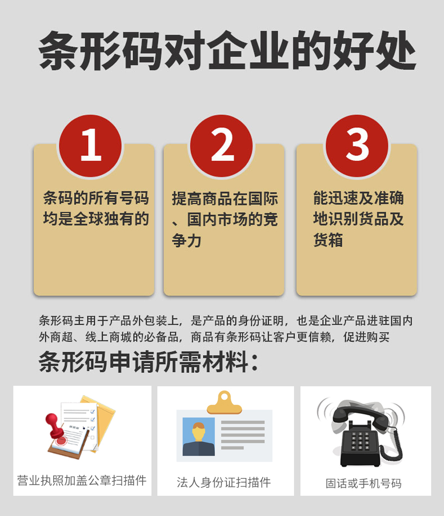 申請商品條碼需提供:營業(yè)執(zhí)照、復(fù)印件蓋公章掃描件、填寫條碼申請登記表。雙方通過友好的溝通,簽定代理申請協(xié)議并支付相關(guān)申請費用
