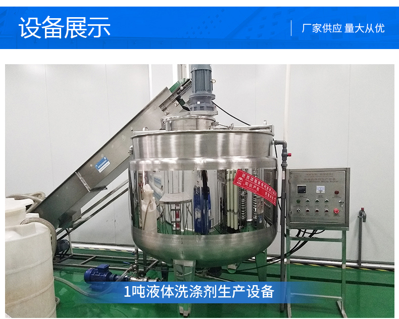 設(shè)備多功能:能一機多用生產(chǎn)洗潔精,84消毒液,洗衣液,洗發(fā)水,沐浴露等100多種液態(tài)洗滌產(chǎn)品 |